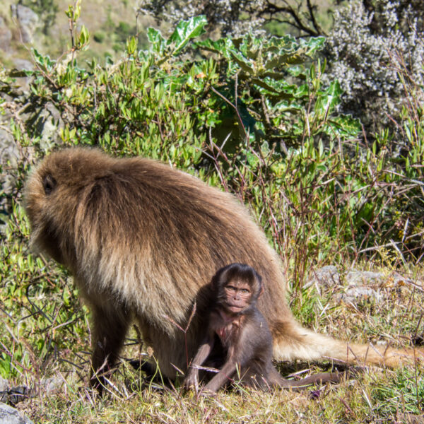 An hour flight to Gonder followed by an hour drive to the Simien Mountains aka the roof of Africa. Drive to the first camp (Sankaber) via Debark (a small town) situated at an altitude of 3250 metres on an impressive view point between the northern escarpment and the southern Wazla. Before you arrive at the camping site, you have about 2 hours walk. On the western escarpments you will encounter troops of the endemic Gelada Baboons (found only in Ethiopia). They are often referred to as the bleeding heart baboon or the lion monkey. Their coat is shaggy resembling a lion whilst their chest has a marked red heart or patch. The Gelada Baboons can be found in good numbers and are quite easy to approach.